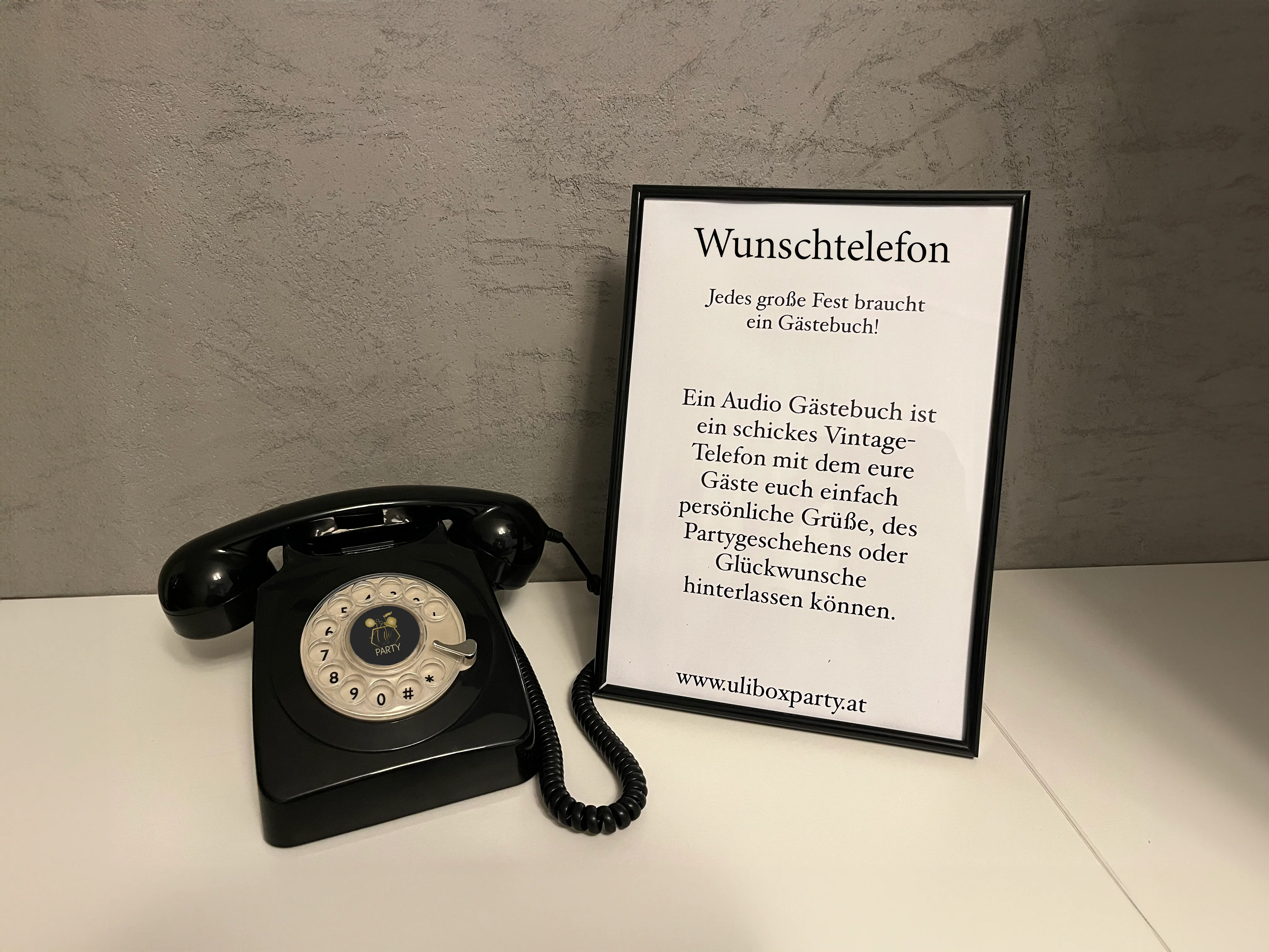 Kontaktieren Sie uns, um mehr über unseren Telefon der Wünsche Service zu erfahren und sich für unvergessliche Aufnahmen auf Ihrer Veranstaltung zu arrangieren!